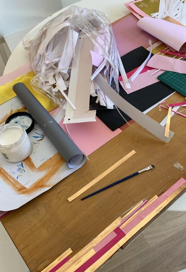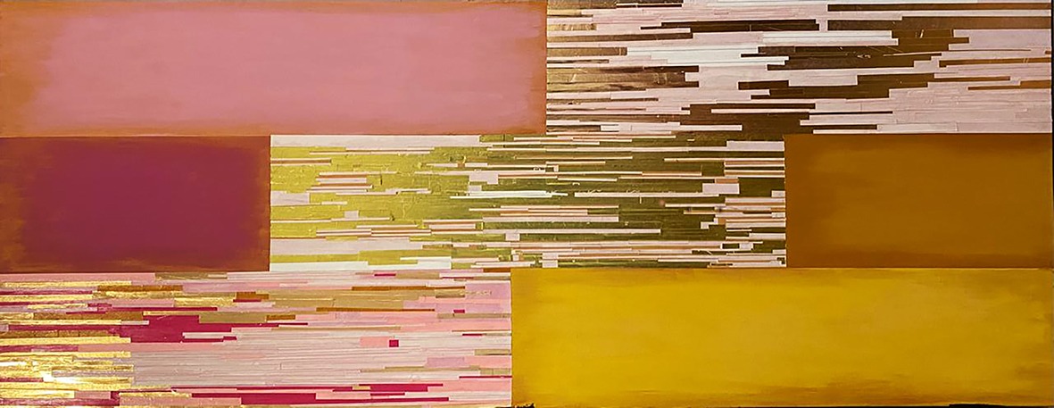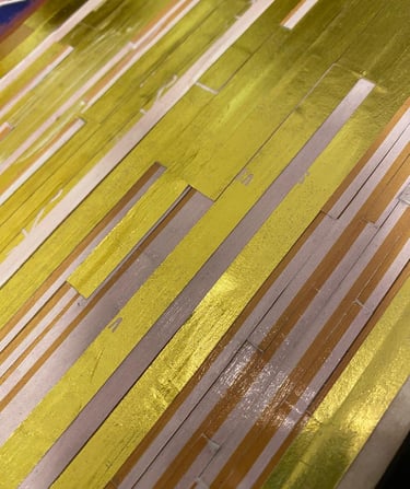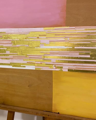 Acrílicos y collage de papel y stamping sobre puerta placa. 58x150cm