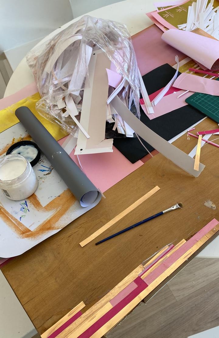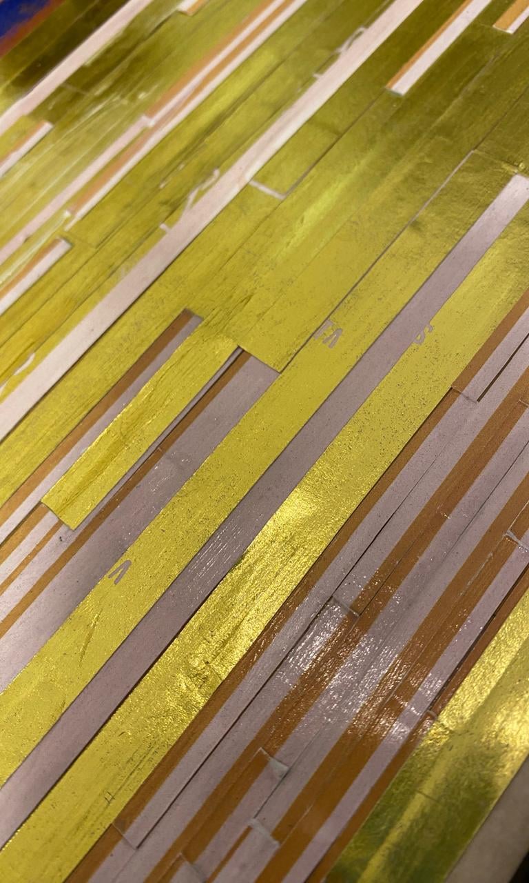 Acrílicos y collage de papel y stamping sobre puerta placa. 58x150cm