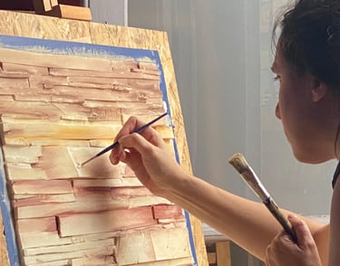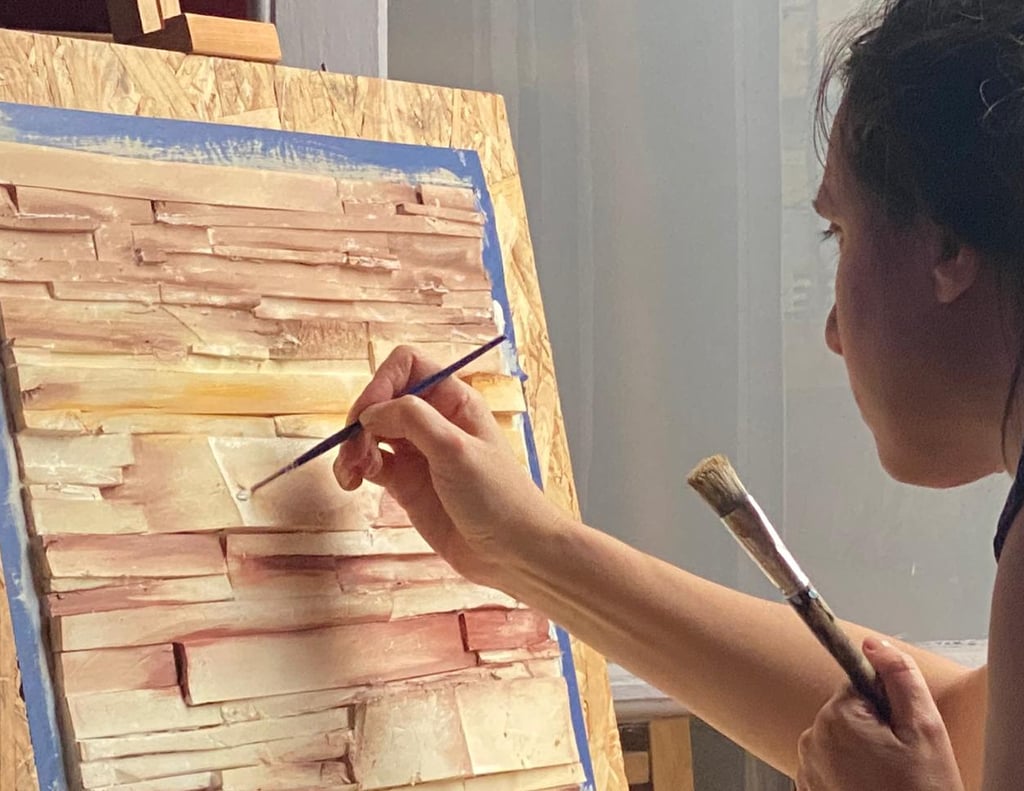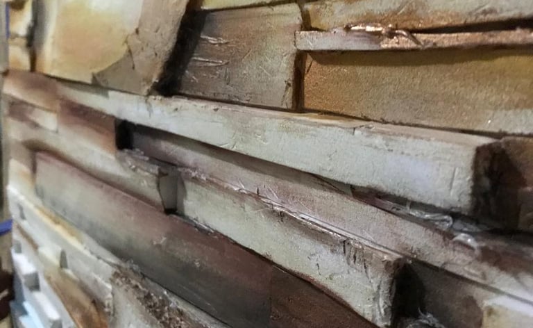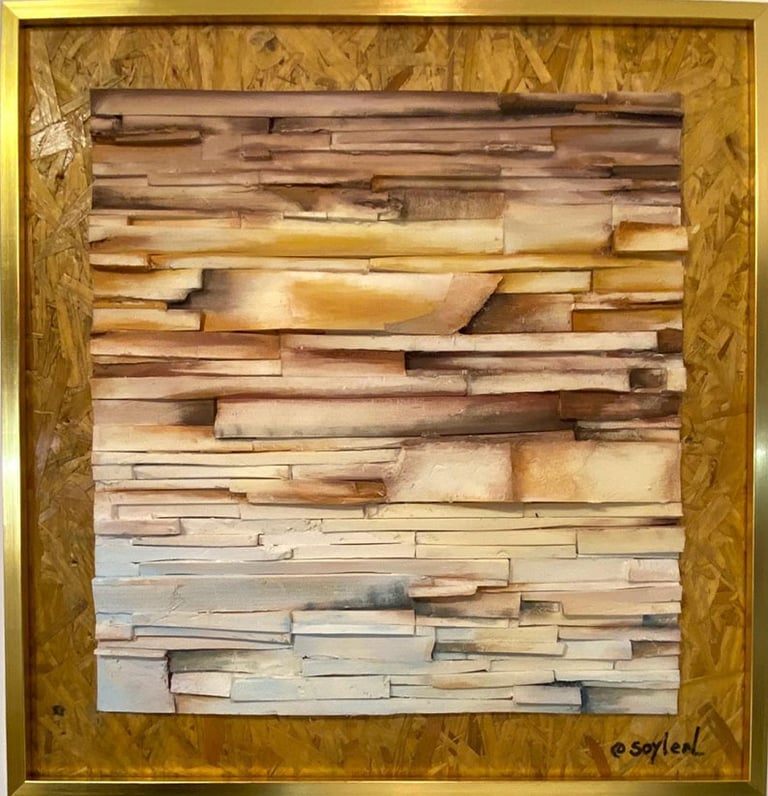 Collage de polyfan y acrílicos sobre base de OBC. 65x62cm